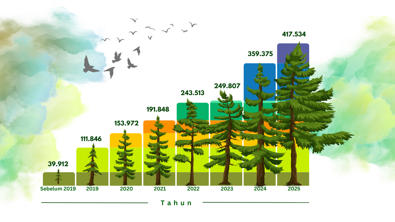 Sampai bulan Desember 2025, total pohon yang telah ditanam sebanyak 417.534 pohon, dimana penanaman sebanyak 138.534 pohon merupakan hasil program internal Tamaris Hidro untuk merehabilitasi lahan di sekitar lokasi PLTM, dan 244.951 pohon merupakan bagian dari program kerjasama dengan Yayasan Alam Hijau Lestari, serta 34.049 pohon merupakan donasi dari karyawan dan pimpinan Perusahaan.